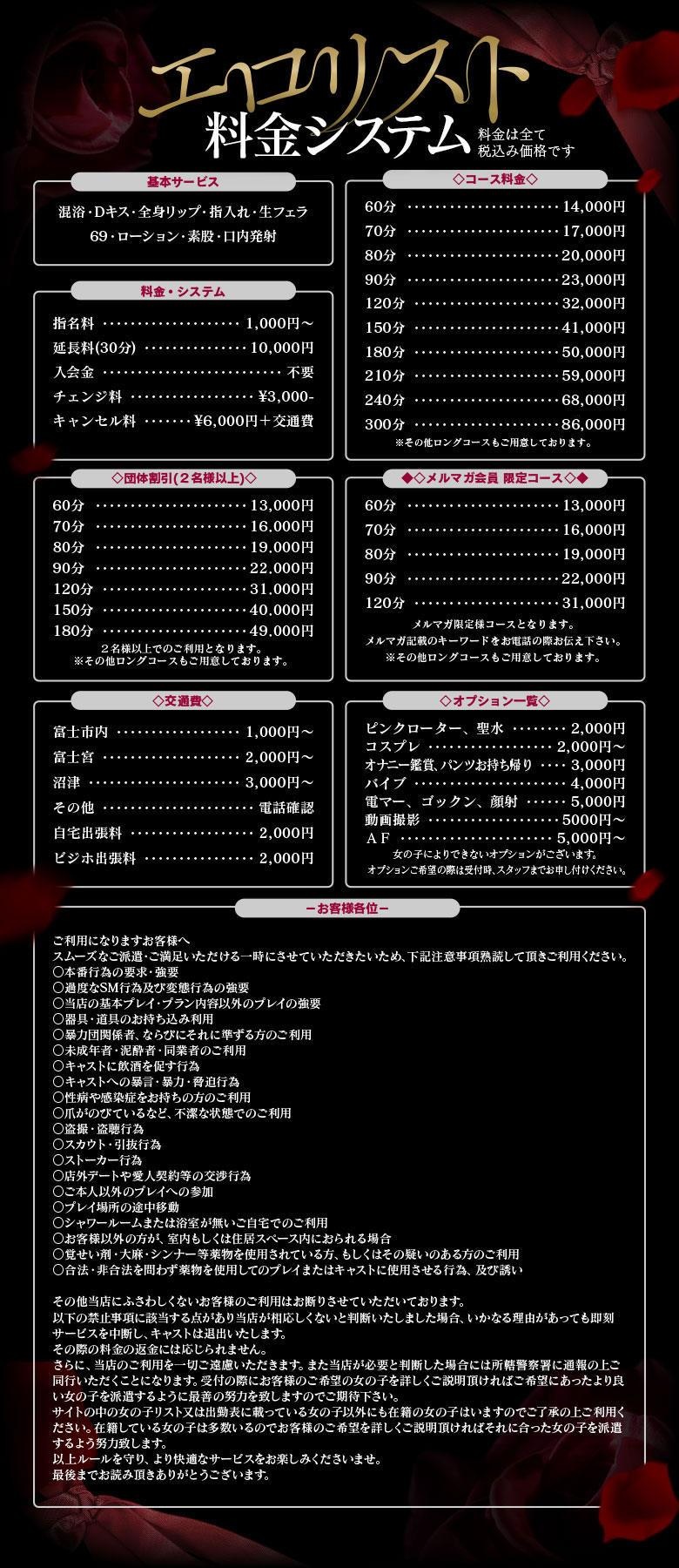 当店では他の店舗では真似出来ない様な美人でサービス精神旺盛な厳選し満足して頂ける事を第一に考え、以前からご要望のありました富士店の出店を決意しました。ぜひエロリスト富士店をよろしくお願い致します!!