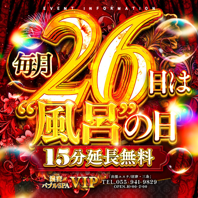 15分無料延長!毎月26(風呂)日開催♪