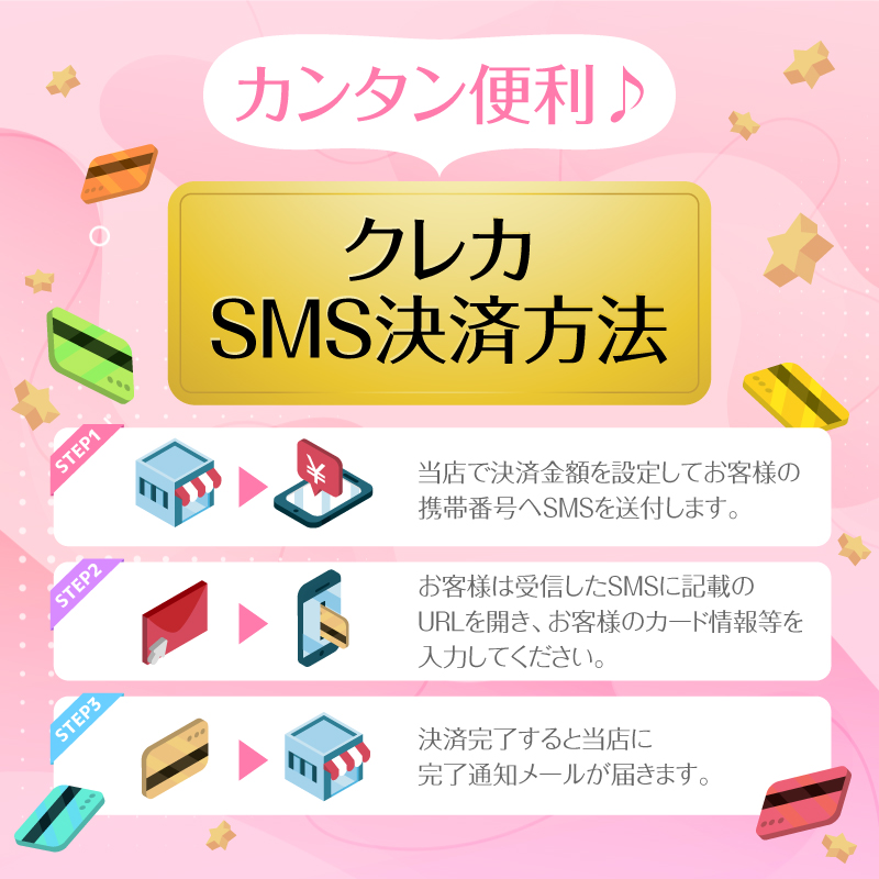 当店ではクレジットカードのご利用は「SMS決済サービス」が使用できます。