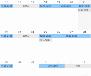 あいすの出勤は日付変わって