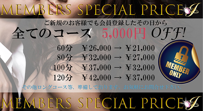 会員登録はご利用前に登録フォームから又は、ご利用当日に当店スタッフが持参する会員規約書にご登録下さい。当日より会員様としてどのコースも通常料金より\5,000円割引とさせていただきます。