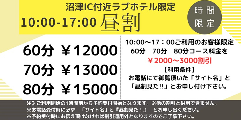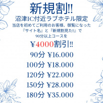 当店を初めてご利用のお客様、沼津IC付近ラブホテル限定